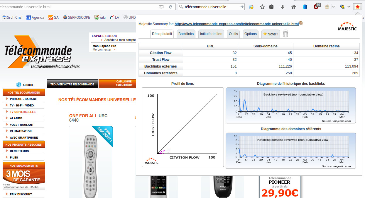 Il s’agit d’un site de niche sépcialisé dans la vente de télécommande : « Télécommande Express ». Un rapide tour du côté de Majestic m’indique que la page n’a pas un référencement très puissant.